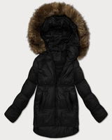 Pikowana kurtka zimowa na futrze Way Mode czarny-beż (WD202308)