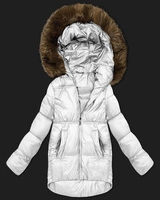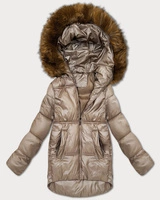 Pikowana kurtka zimowa na futrze Way Mode coffee-beż (WD202308)