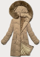 Damska kurtka zimowa z kapturem ciemny beż (5M3169-84)