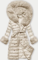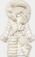 Puchowy płaszcz damski na guziki ecru (5M3160/1-254)