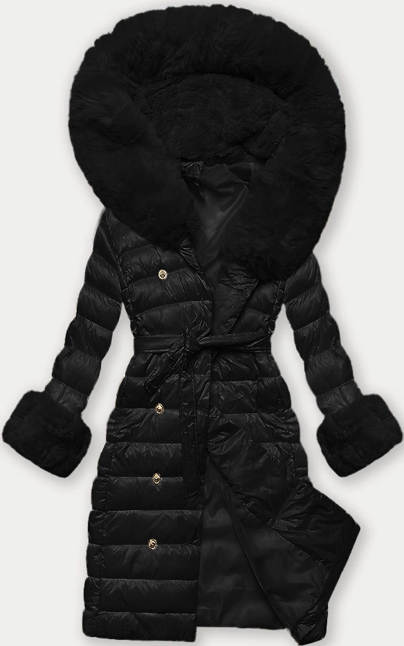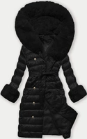 Puchowy płaszcz damski na guziki czarny (5M3160/1-392)