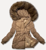 Damska kurtka zimowa z kapturem ciemny beż (5M3169-84)