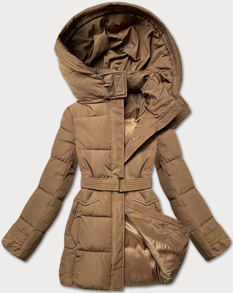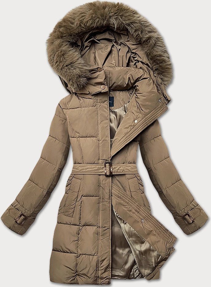 Zimowa damska kurtka z paskiem J Style ciemny beżowy (5M3227-84)