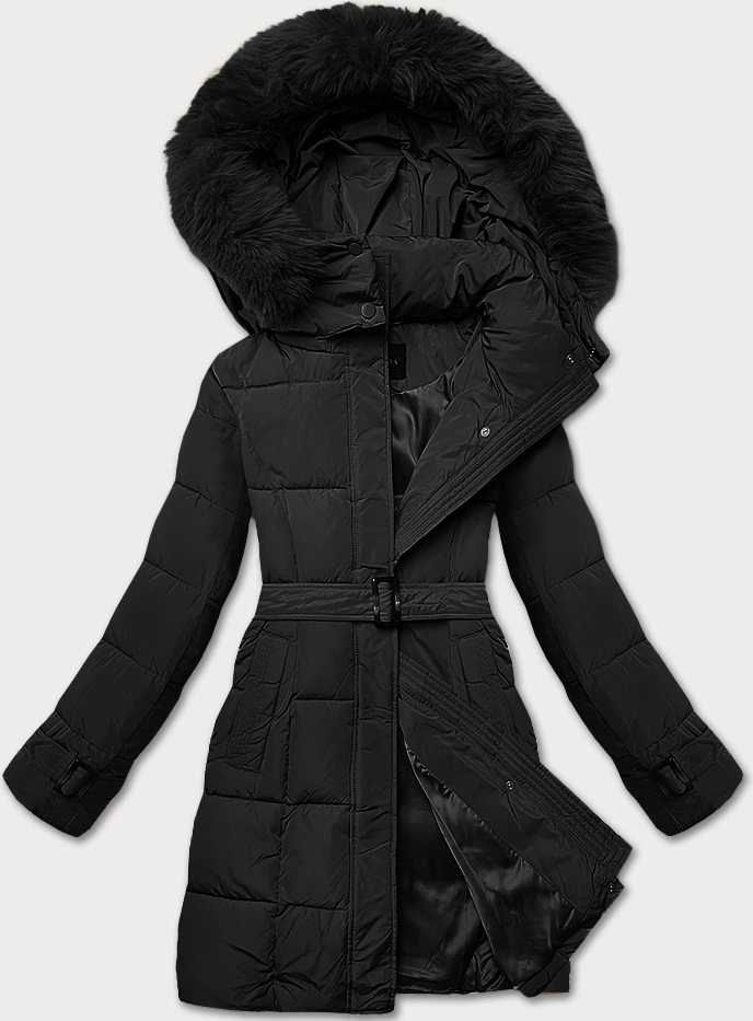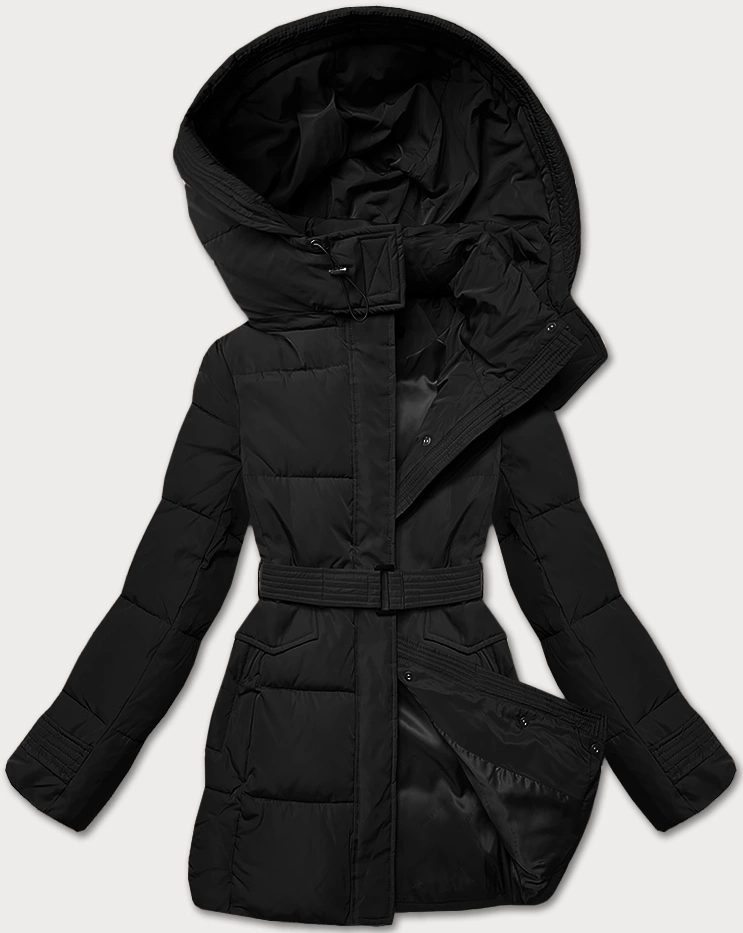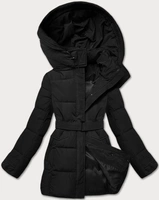 Zimowa kurtka damska z paskiem LHD czarna (LHD-24575)