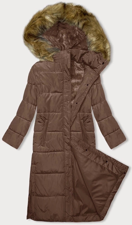 Pikowany płaszcz z kapturem złotobrązowy (AG1-J9069)