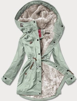 Zimowa parka damska z wstawkami z ekoskóry miętowa (2M-21A93)
