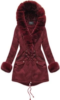 Bawełniana damska parka zimowa z futrem bordowa (xw801-3x)