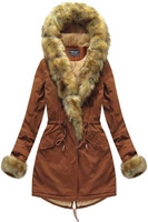 Bawełniana damska parka zimowa z futrem karmelowa (xw793x)