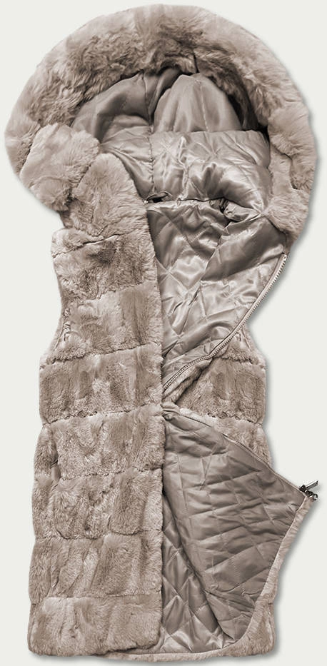 Kamizelka futrzana z kapturem beżowa (BR8060-12)