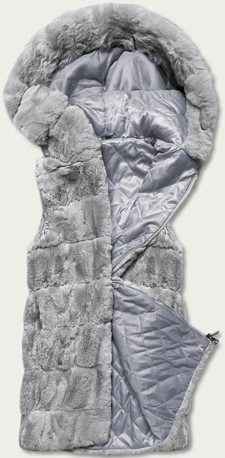 Kamizelka futrzana z kapturem szara (B8059-9)