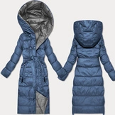 Dwustronna zimowa kurtka z paskiem Minority niebieski-szary (M2-6519-30+61)