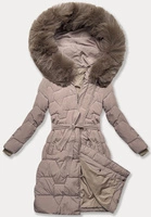 Zimowa damska kurtka z paskiem J Style ciemny beżowy (5M3227-84)