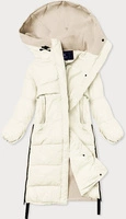 Długa kurtka zimowa z łączonych materiałów ecru (jin-210)
