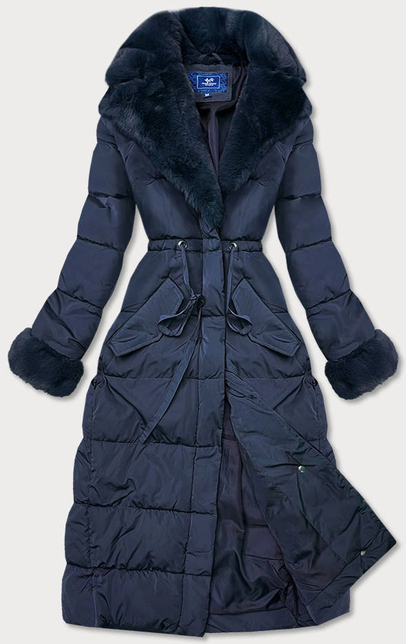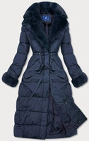 Długa kurtka zimowa z futrzanym kołnierzem granatowa (j9-071)