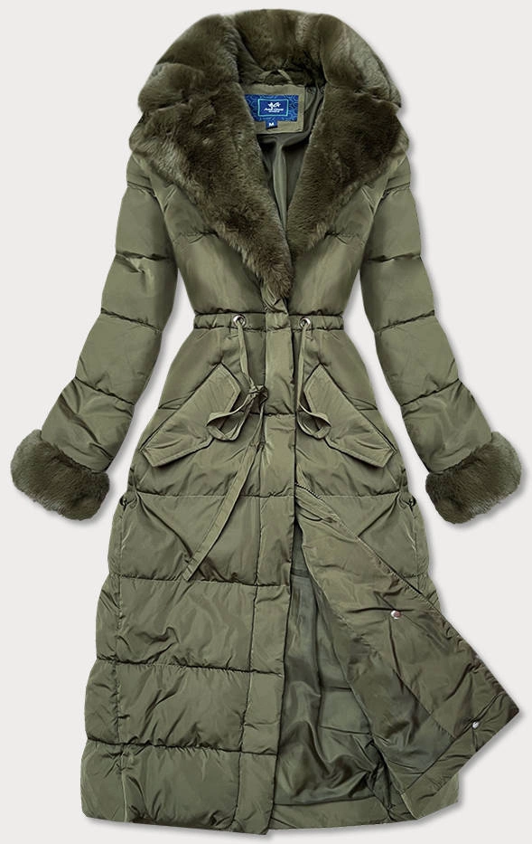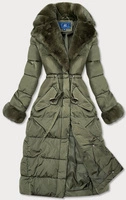 Długa kurtka zimowa z futrzanym kołnierzem khaki (j9-071)
