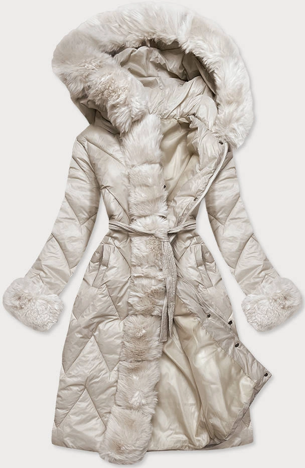 Damski zimowy płaszcz z futrem beżowy (008)