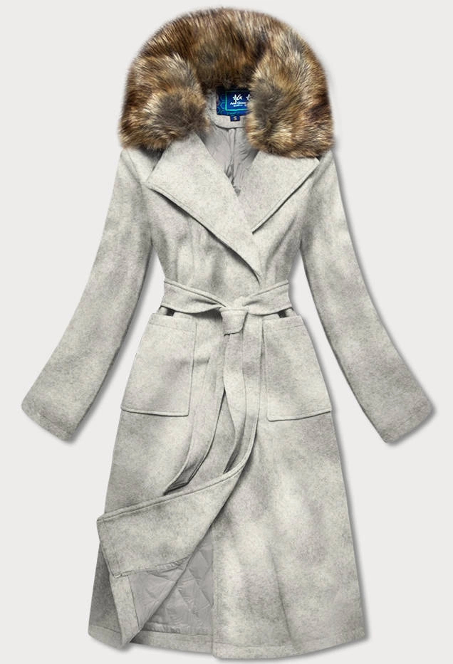 Damski płaszcz z futerkiem jasny szary (saskia)