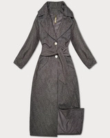 Długi płaszcz damski z paskiem S'West czarny-paseczki (B8542-1)