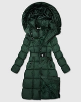 Długa gruba kurtka zimowa z paskiem Minority ciemno-zielona (P3-6033-33)