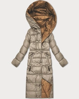 Pikowana długa kurtka zimowa damska Libland ciemny beżowy (7767)