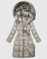 Długa gruba kurtka zimowa z paskiem Minority beżowa (P3-6033-62)