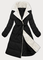 Damski płaszcz zimowy z futrzanym kołnierzem J Style czarny-ecru (16M9168-392B)