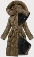 Zimowa kurtka damska do kolan oliwkowa (m-21601)