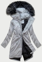 Długa damska kurtka zimowa z kapturem szara (7688BIG)