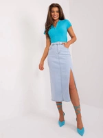 Spódnica dżinsowa midi z rozcięciem jasny niebieski (M557)
