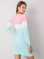 Trójkolorowa długa bluza damska z kieszeniami róż/ecru/mięta (5869)