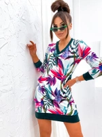 Sukienka z dzianinową bluzką beż-ciemna zieleń (682)