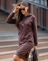 Dzianinowa sukienka z kapturem szara (0582)