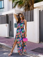 Długa sukienka z gumką w talii multikolor (8183)