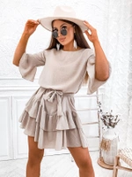 Bawełniana sukienka z falbanami beżowa (8292)