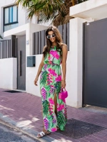 Letnia sukienka w kwiaty różowo-zielona (8276)