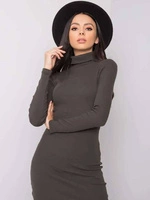 Dopasowana sukienka w prążki z golfem Rue Paris ciemny khaki (5133)