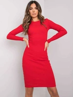 Dopasowana sukienka w prążki z okrągłym dekoltem czerwona (5131-09)