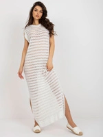 Muślinowa sukienka z wiązanym dekoltem ecru (8298)