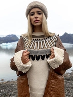 Sweter damski z kołnierzykiem jasny beżowy (2349)