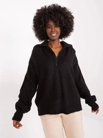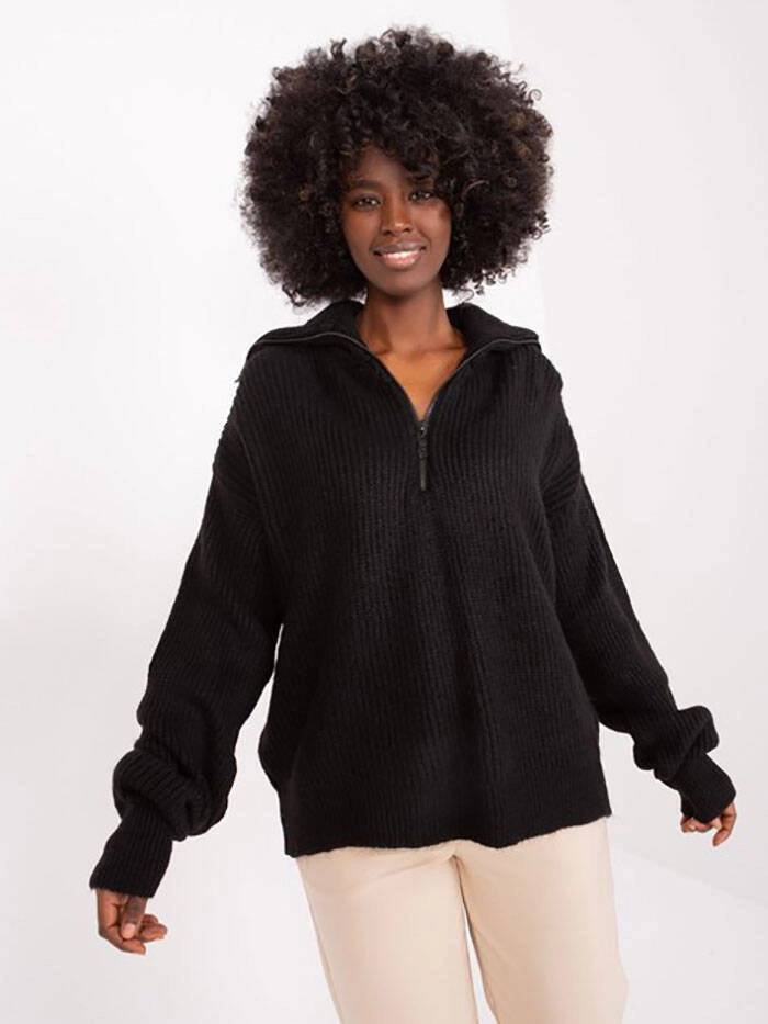 Luźny sweter damski z rozpinanym golfem czarny (0374)