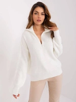 Luźny sweter damski z rozpinanym golfem ecru (0374)
