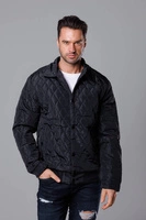 Pikowana kurtka męska z kołnierzem czarna (58M13081-392)