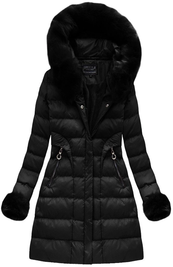 PIKOWANA KURTKA DAMSKA ZIMOWA Z KAPTUREM CZARNA (W765-1)