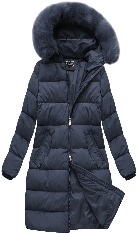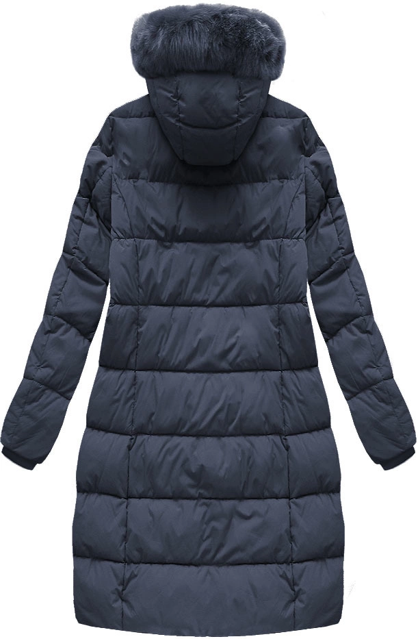 PIKOWANA KURTKA DAMSKA ZIMOWA Z KAPTUREM GRANATOWA (7790-PLUS)