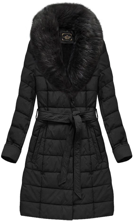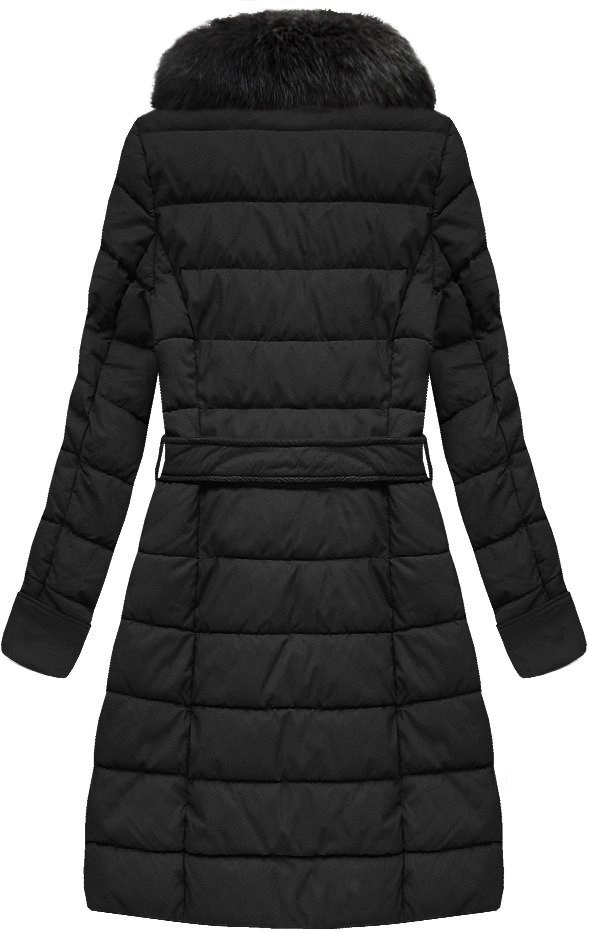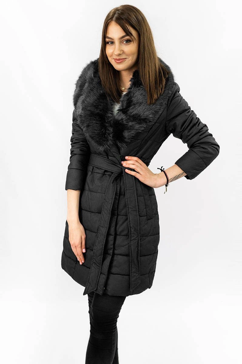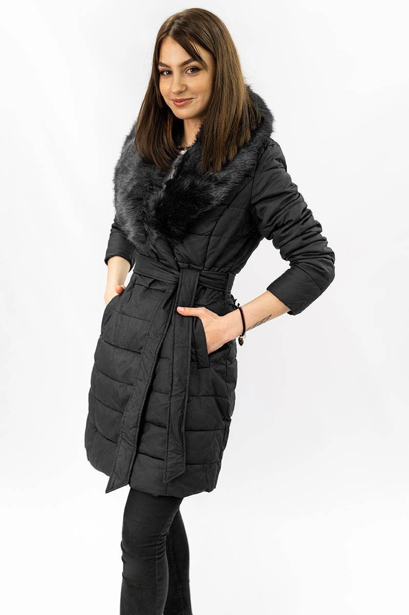 DAMSKI PŁASZCZ Z EKOSKÓRY Z FUTERKIEM CZARNY (5527)