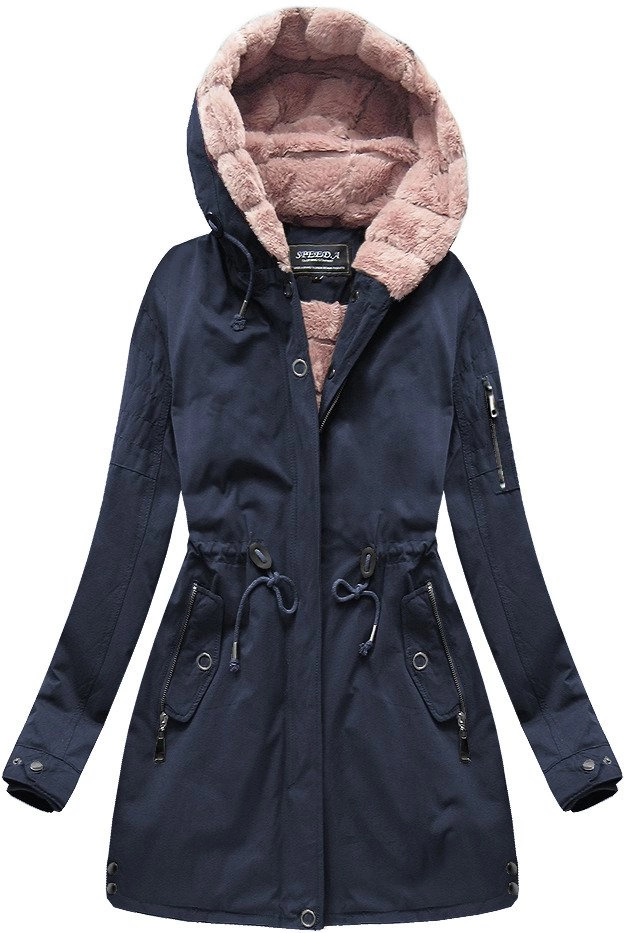 PARKA DAMSKA ZIMOWA Z FUTREM GRANATOWA (XW807X)