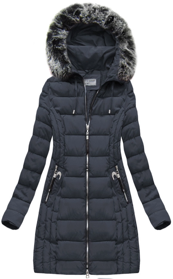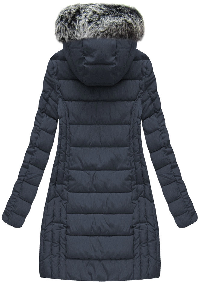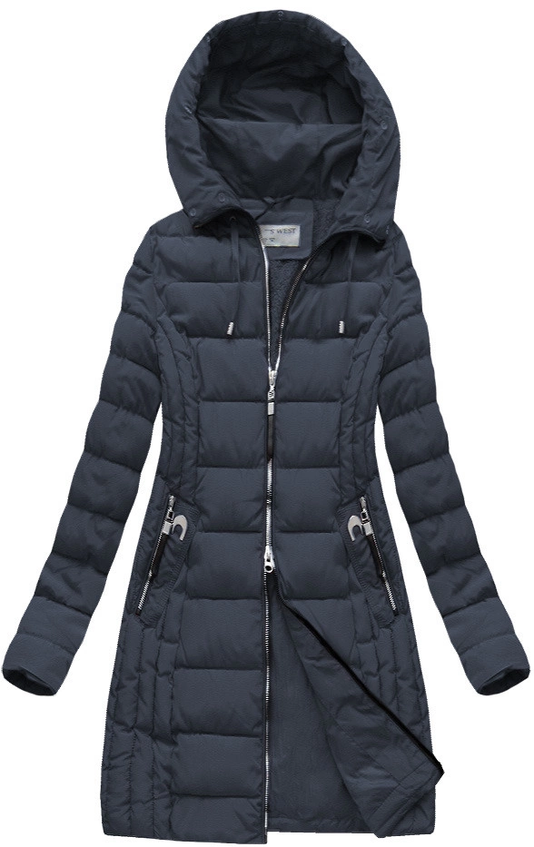 DŁUGA KURTKA Z KAPTUREM GRANATOWA (B1056-30)