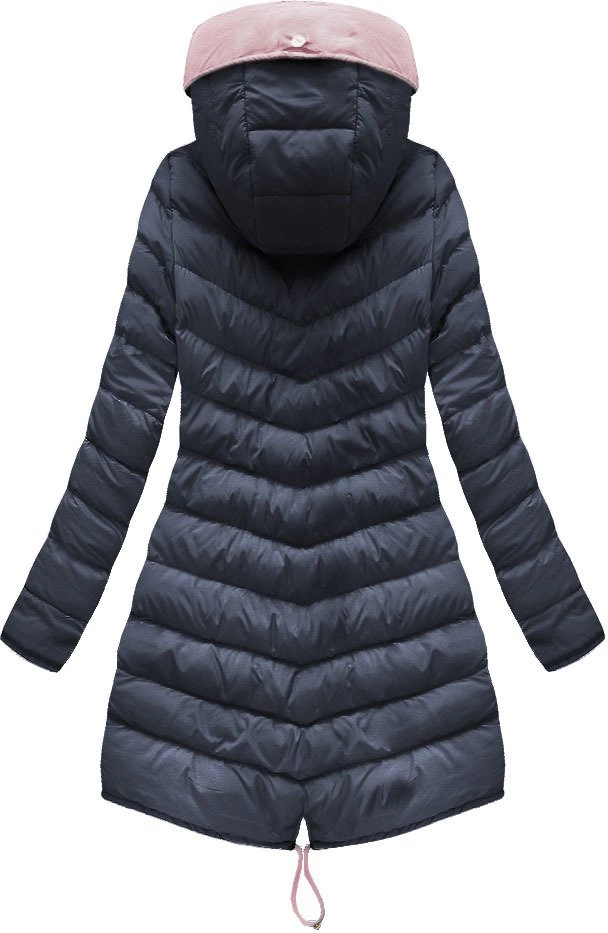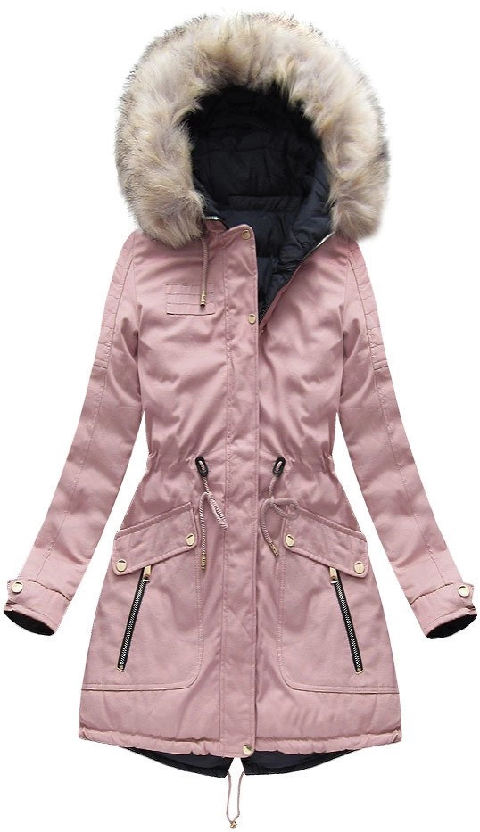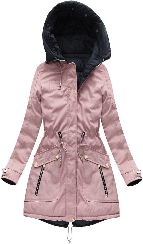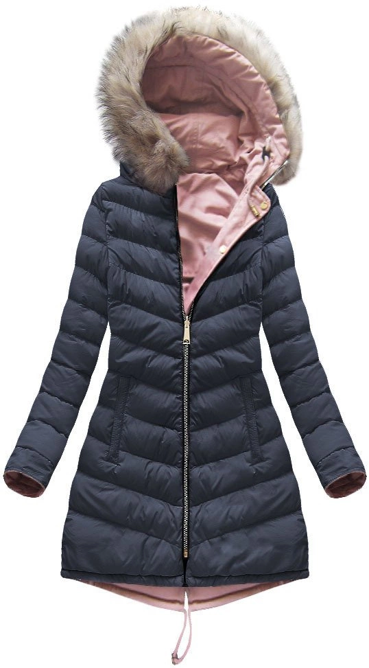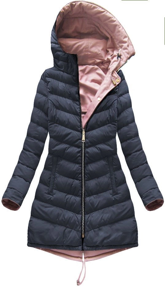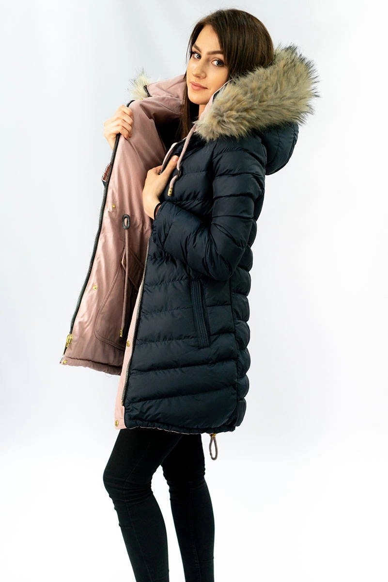 DWUSTRONNA DAMSKA KURTKA ZIMOWA Z KAPTUREM RÓŻOWO-GRANATOWA (W632)