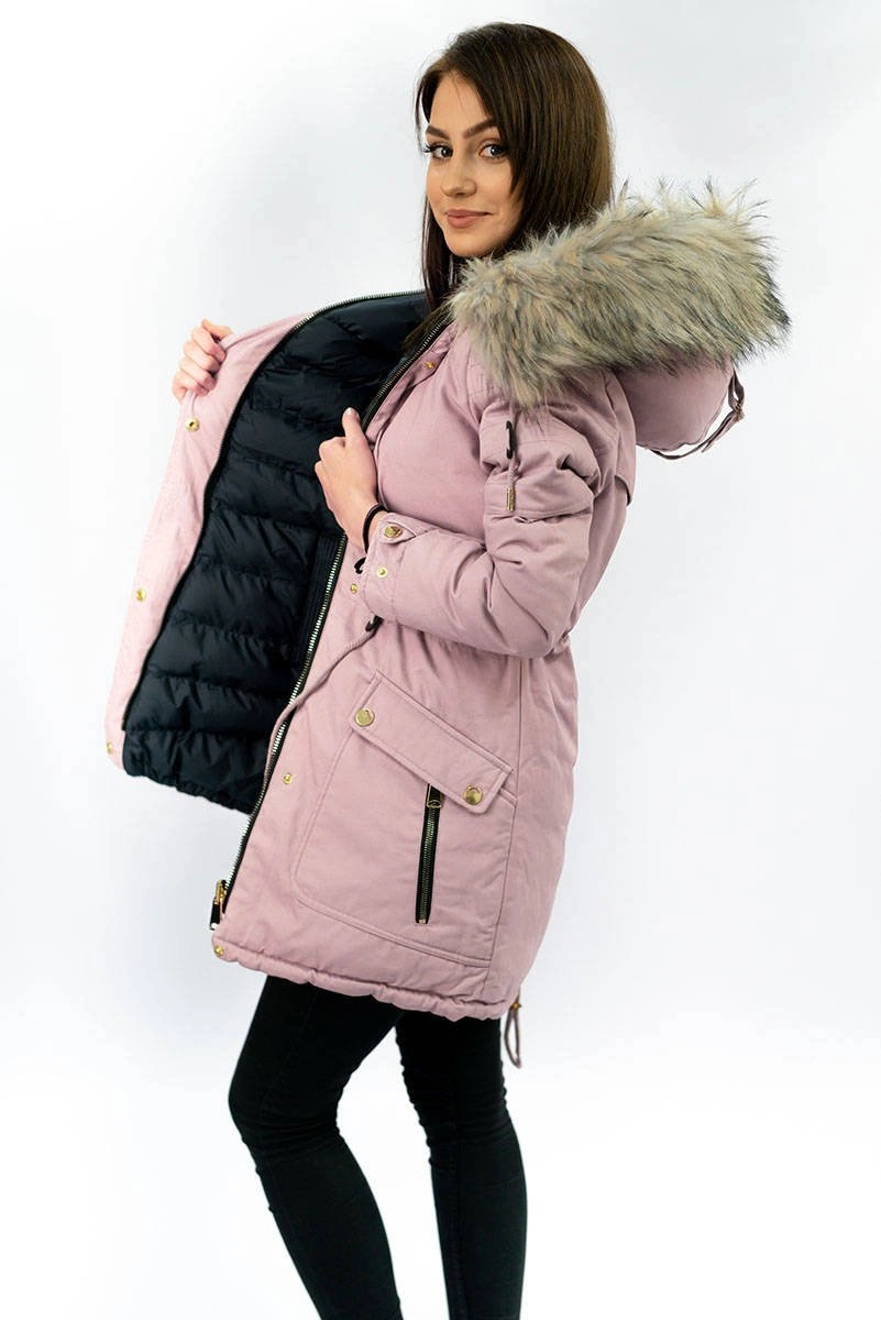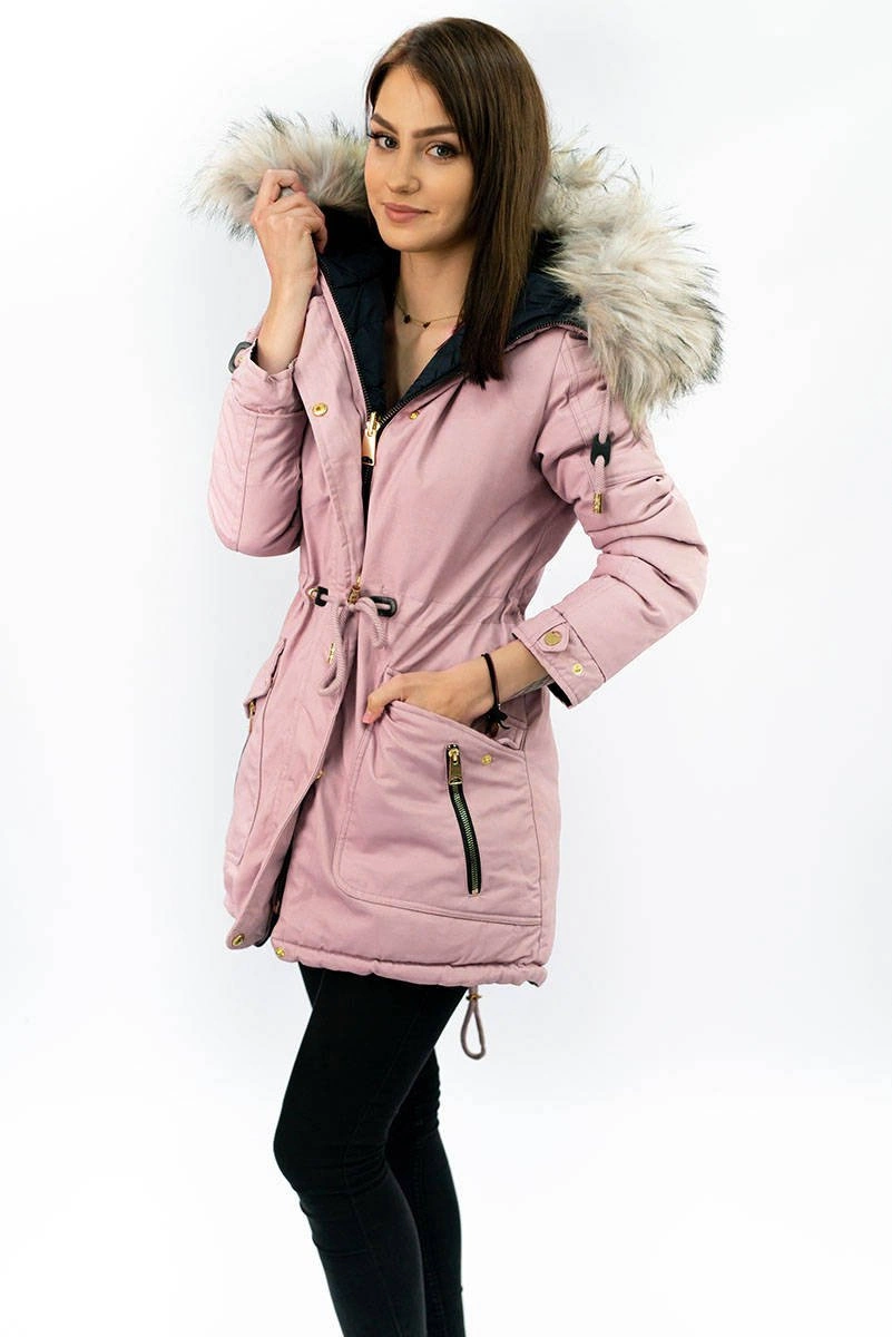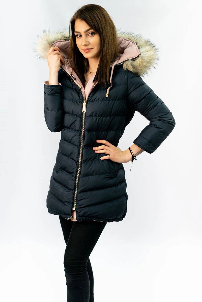 Opinie o DWUSTRONNA DAMSKA KURTKA ZIMOWA Z KAPTUREM RÓŻOWO-GRANATOWA (W632)