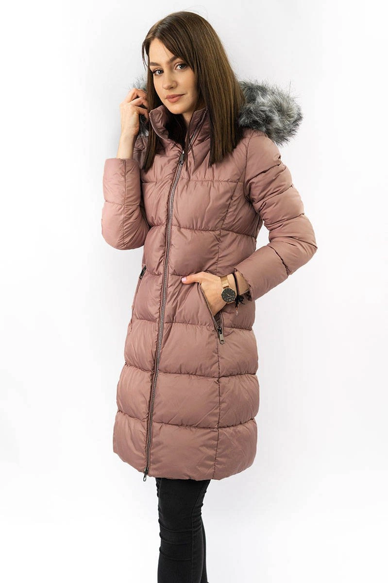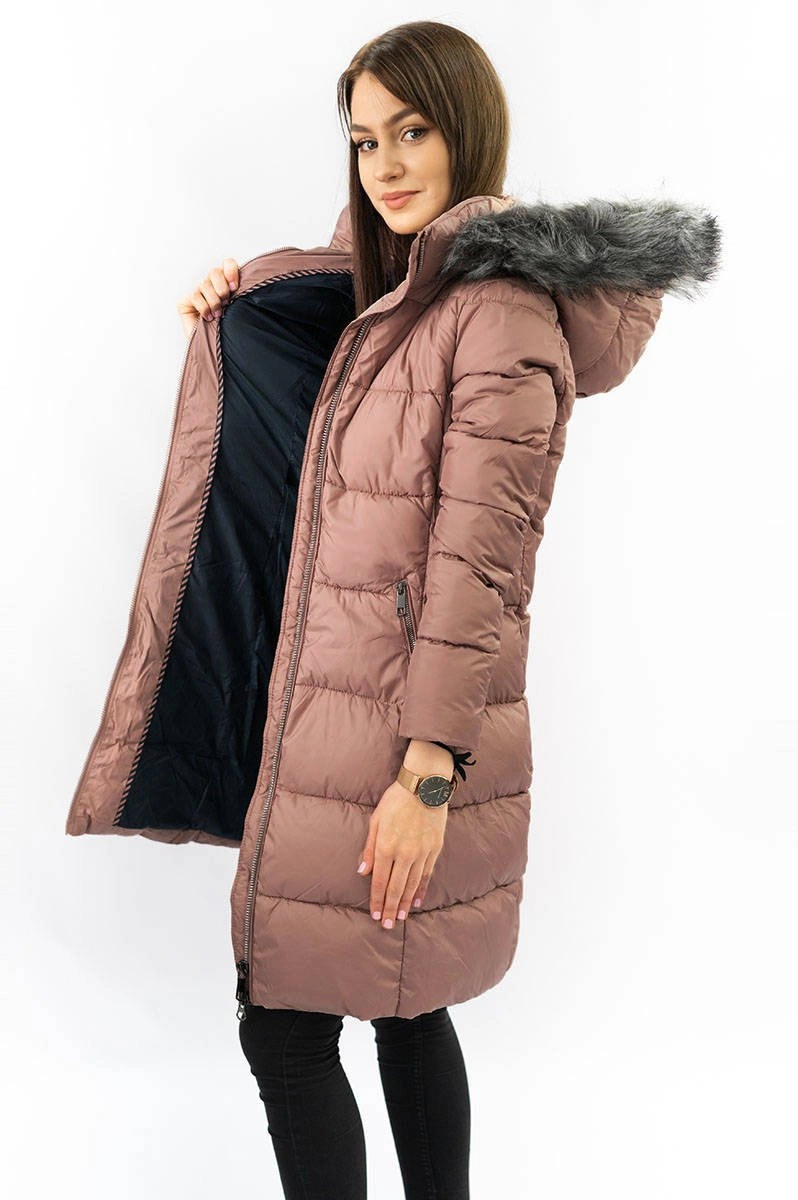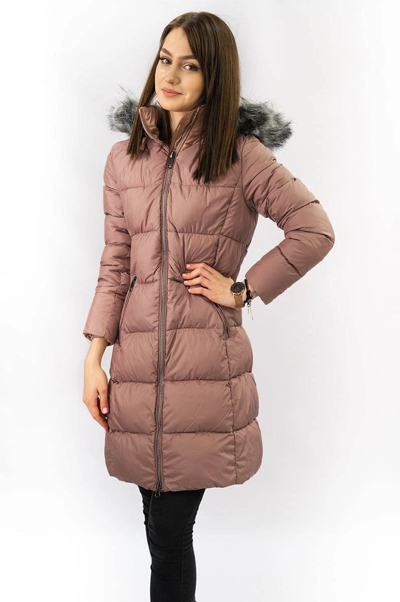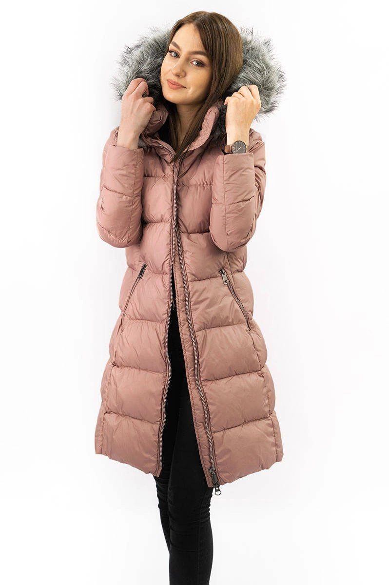 Damska zimowa pikowana kurtka antyczny róż (7701)